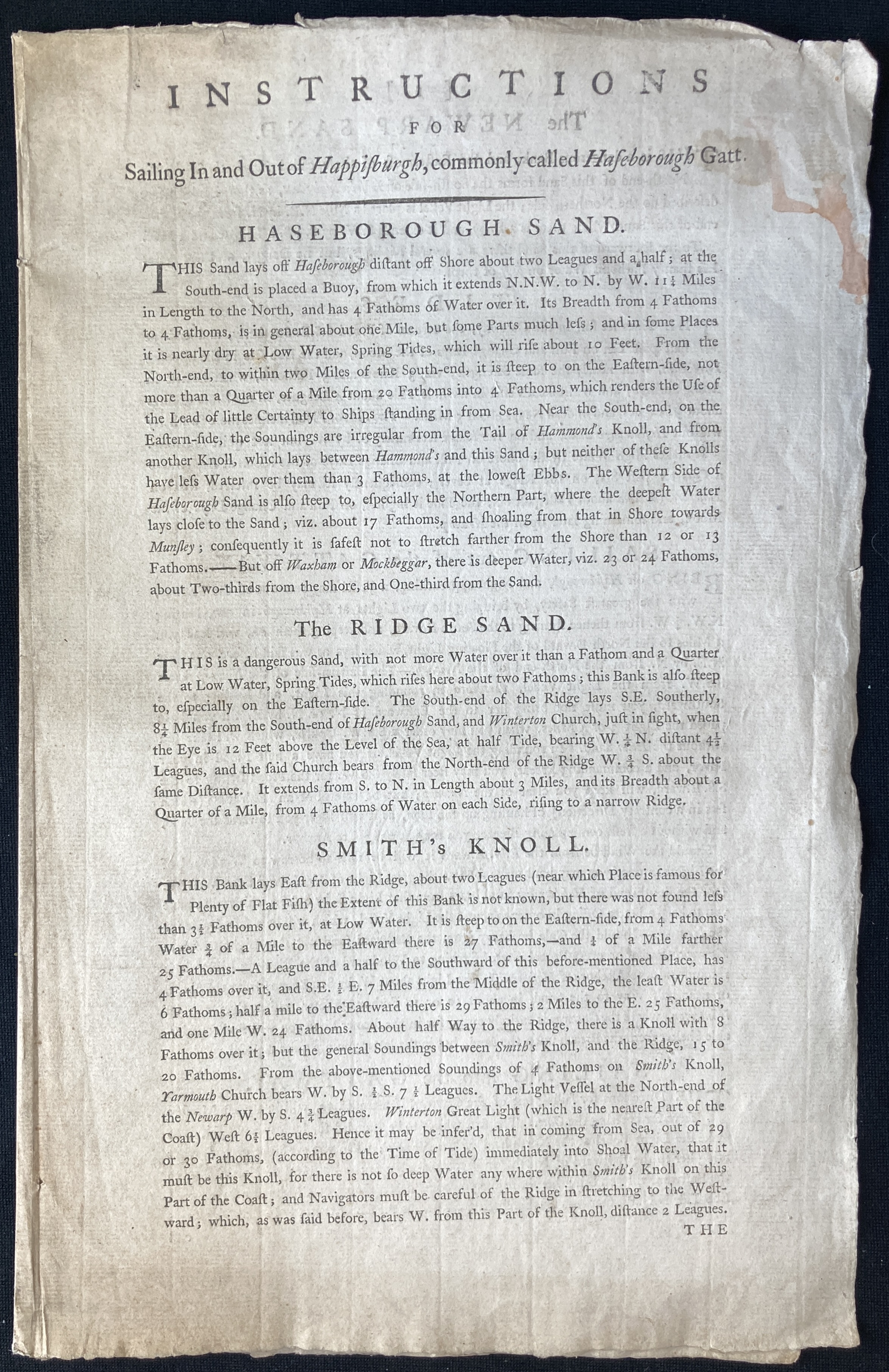 3). Instructions for sailing in and out of Happisburgh, commonly called Haseborough Gatt.