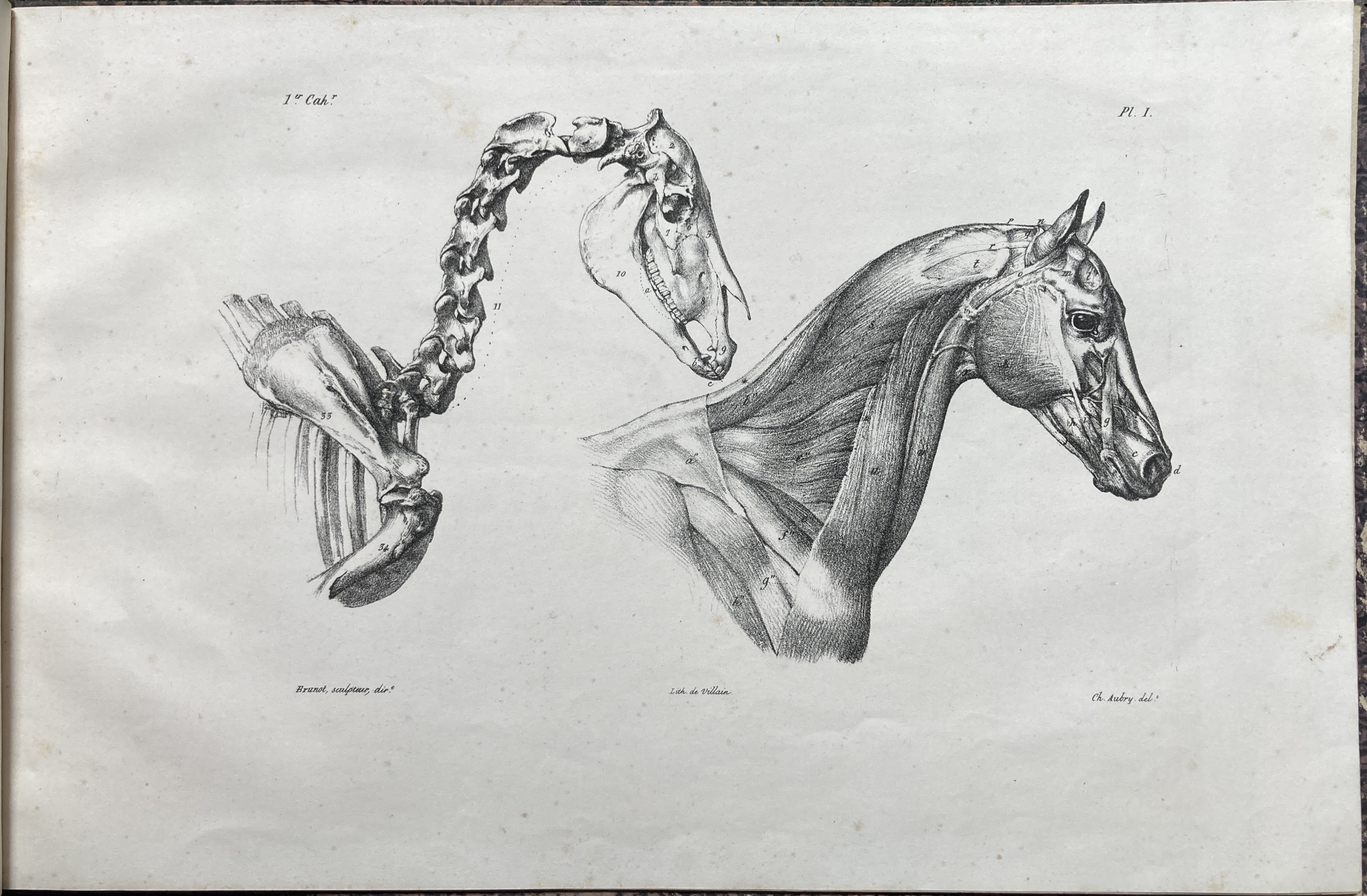First edition of the first four fascicules and an explanatory text of this magnificent equine album. The Bibliothèque de La Roche-sur-Yon reports the existence of a fifth fascicule, which is otherwise untraced, extremely rare and published later (1825 or 1826), including plates 17 to 20, which Mennessier also records. Our set was bound earlier. The anatomical descriptions in the text plate are scientifically precise and keyed to the drawings with a series of index numbers indicating the names and locations of each bone and muscle.