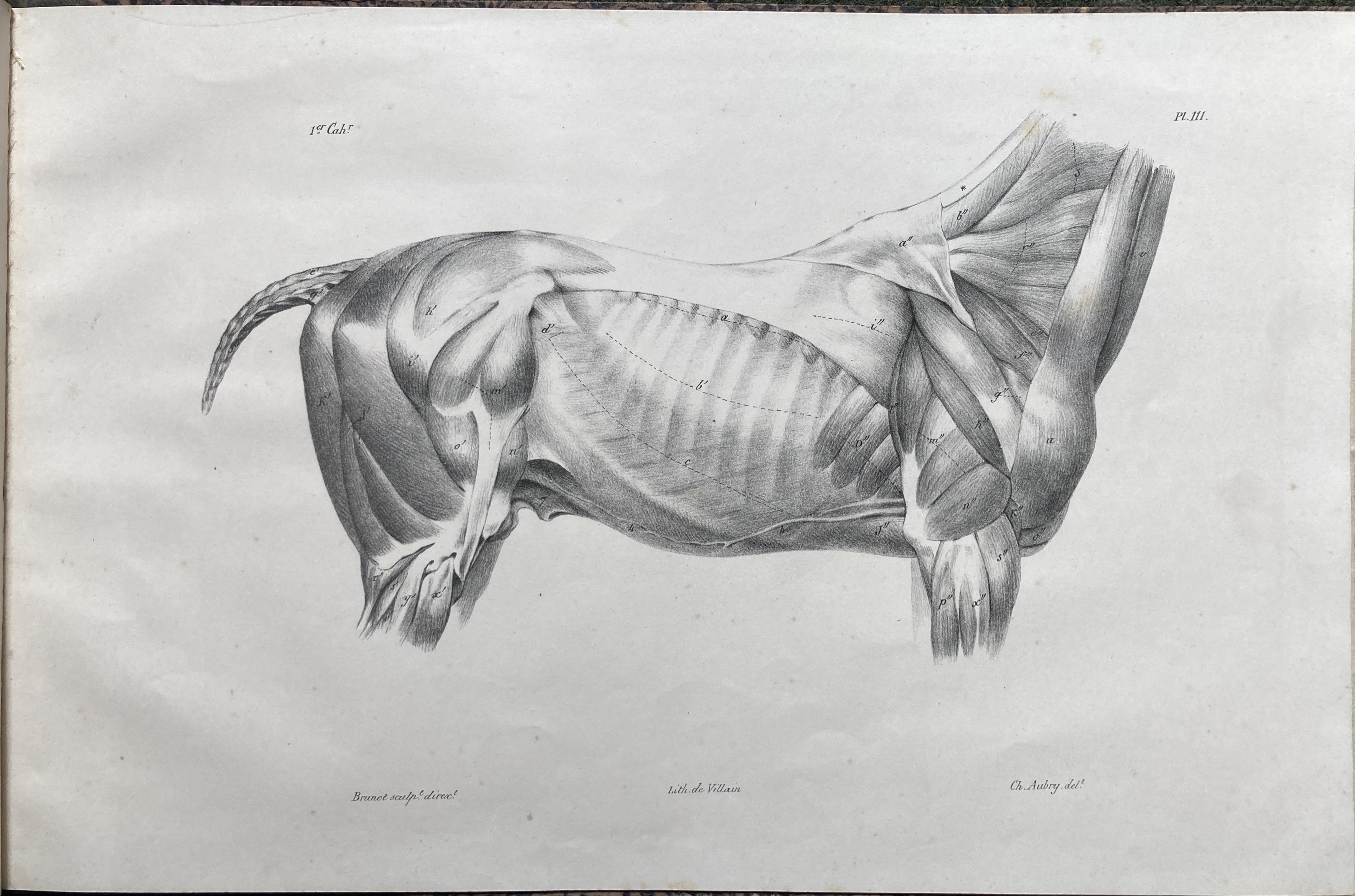 (30 x 45 cm). Oblong folio. Contemporary goatskin spin over marbled paper boards. 3 leaves (title page & tables), 16 anatomical plates in black, lithographed by Villain (after Aubry & Loeillot), engraved by Brunot.