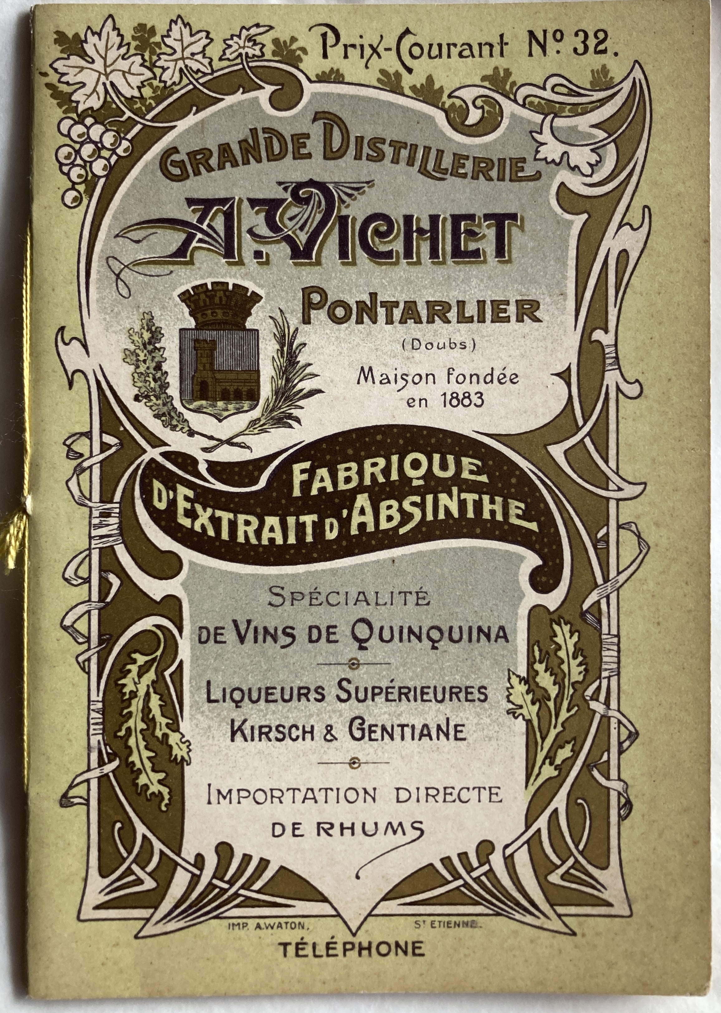 VICHET, A. Grande distillerie - Fabrique d’extrait d’absinthe. Prix-courant n° 32.