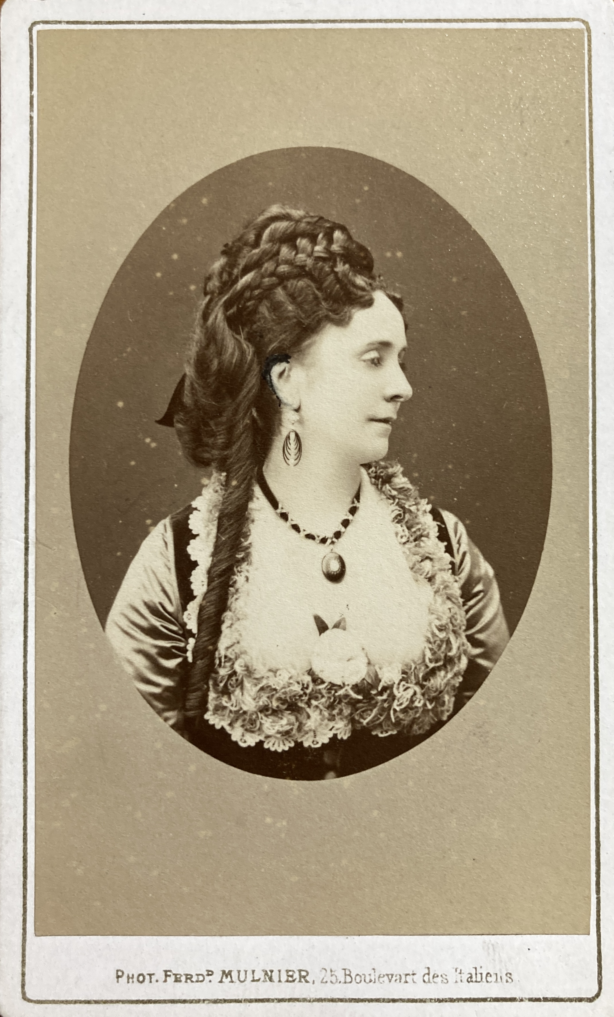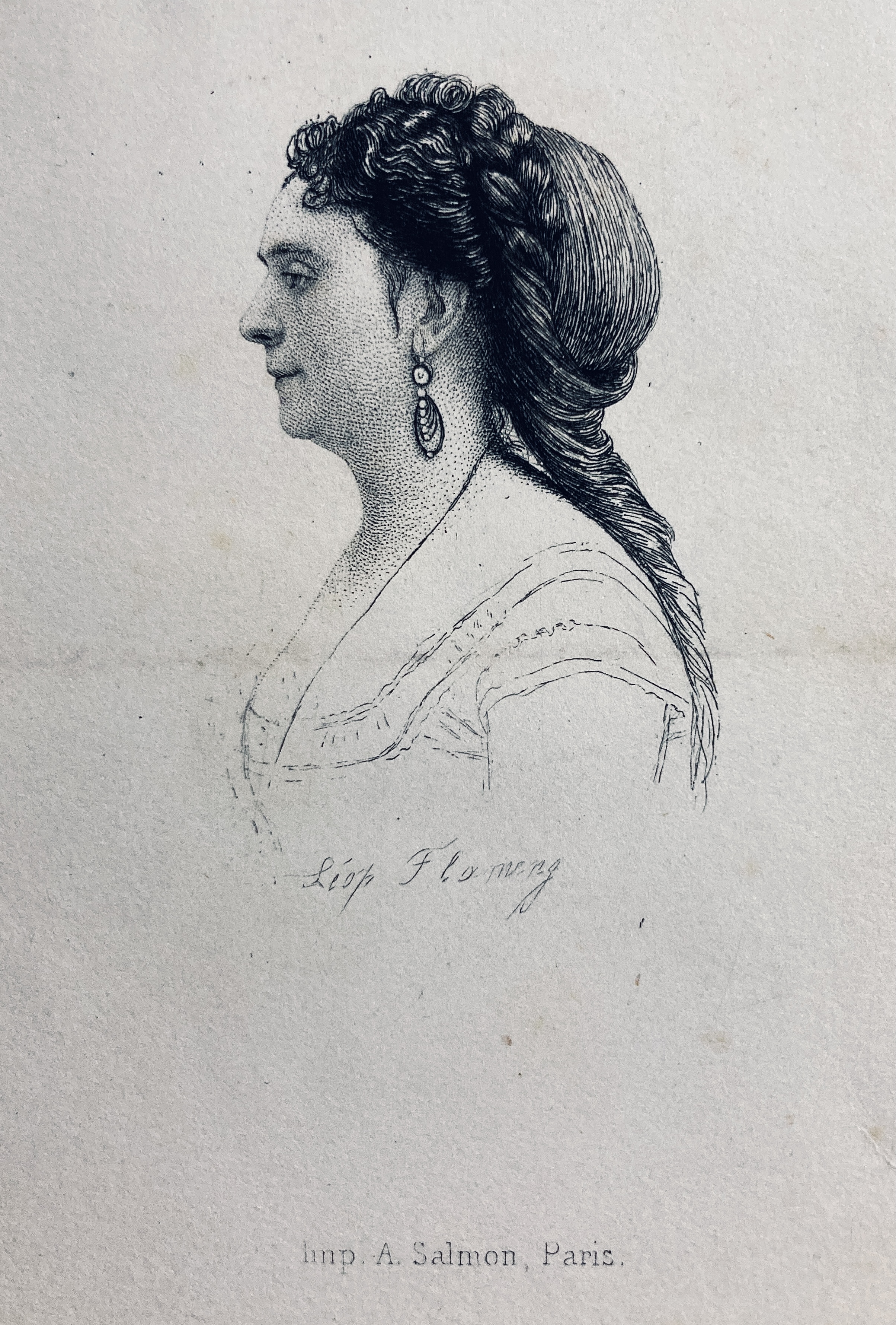 The author Marie-Laetitia Bonaparte-Wyse (1831-1902), was the daughter of Laetitia Bonaparte-Wyse, herself the daughter of Lucien Bonaparte and Alexandrine de Bleschamp, led a whimsical life as an aventurière of letters, a prolific writer who occasionally took “Baron de Stock” or “Bernard Camille” as noms de plumes. She was banned from Paris by her cousin Napoleon III in 1852, who suspected her of plotting, and again after the controversy of her novel in 1865-6. Married in 1848 to Frédéric-Joseph de Solms, then in 1863 to the Italian minister Urbano Rattazzi, and finally to the Navarrese Don Luis de Rute y Gines, she had an adventurous love life as well (including a liaison with Eugène Sue).