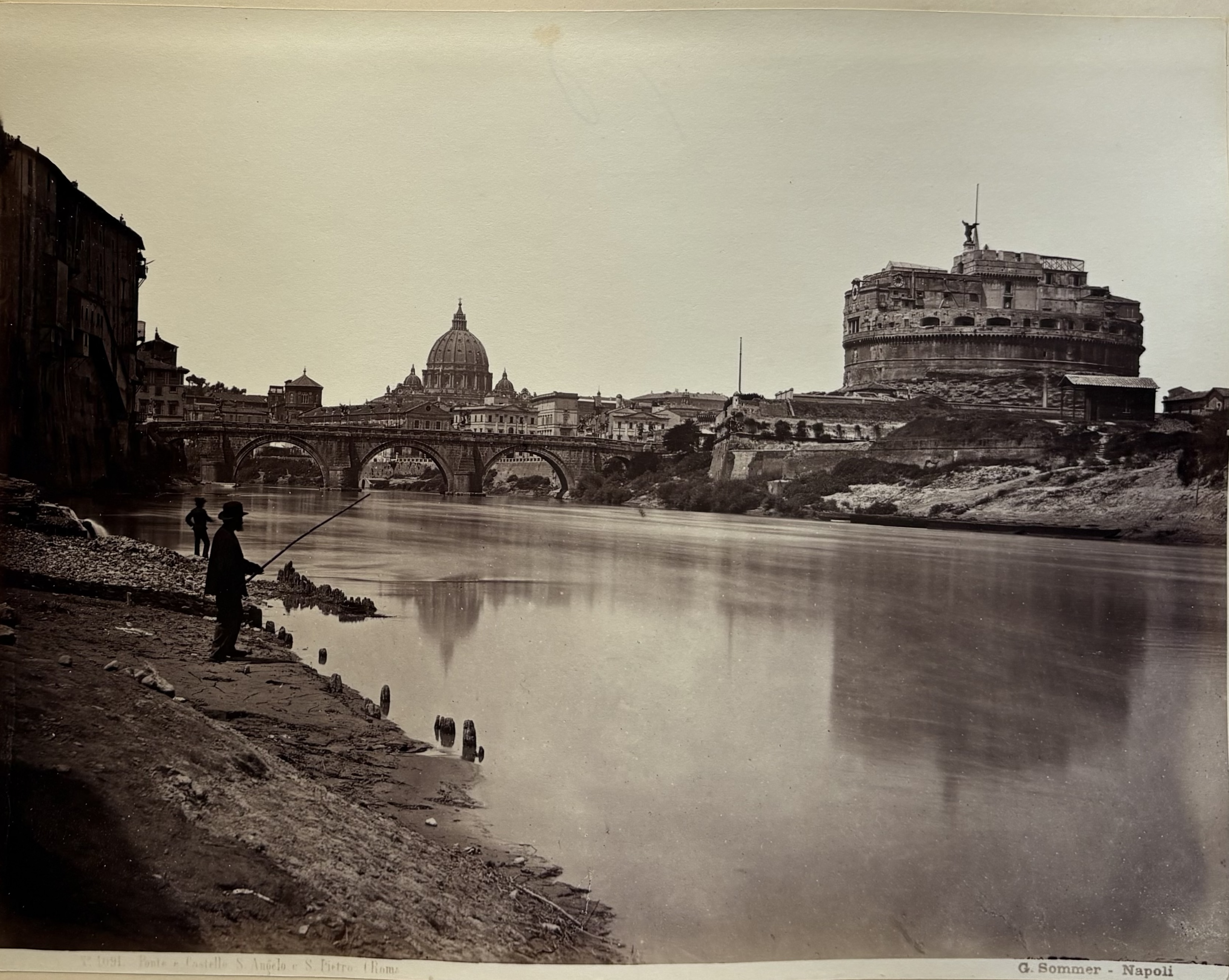 Giorgio Sommer (1834-1914), originally from Frankfurt, was one of the leading and most prolific photographers of the 19th century. He established himself in Naples in 1856 and for 30 years produced thousands of photographs of archeological ruins, buildings and street scenes, landscapes, art objects, and portraiture. Sommer partnered with fellow German Edmondo Behles, in 1866 and they ran studios in Rome and Naples. There are six images in this album with his “G. Sommer – Napoli” stamp, while other images are likely by him as well, based on comparison with known images.